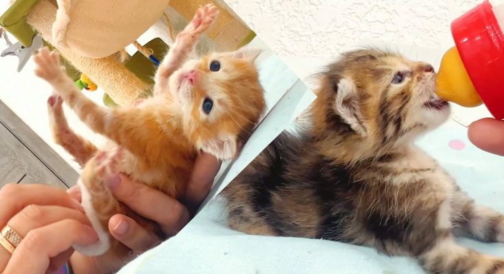 Bottle-feeding began immediately. Tiny syringes and kitten bottles were prepared with special formula milk, warmed to just the right temperature. One by one, each kitten was held close, cradled like a newborn. Their mouths, at first weak with confusion, soon latched eagerly onto the nipple. Each drop of milk was life—restoring strength, hope, and warmth. Feeding was slow, every two hours, day and night. It was exhausting, but their faint purrs made every sleepless night worth it.