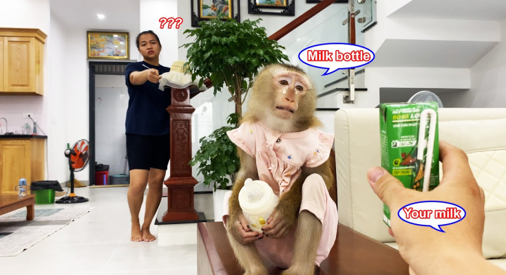 Monkey LyLy, known for her expressive face and dramatic reactions, was having what she believed to be the worst morning ever. The sun had just risen, and as usual, she sat patiently by her favorite spot, expecting her warm bottle of milk. It was her morning ritual—one she eagerly looked forward to. But today, something went wrong.