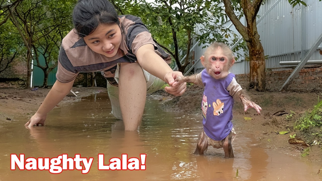 Back at home, Mom realized Lala was gone. Panic rushed through her as she searched every corner of the house. Calling out her name, Mom hurried to the farm. Soon, she heard faint laughter coming from the pond. There was Lala, soaked, muddy, and happily splashing away as if nothing was wrong.