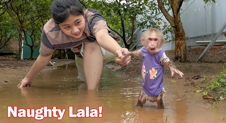 It was a bright, sunny morning on the peaceful farm, and little Lala woke up with a spark of mischief in her eyes. Today, she felt like having her own secret adventure. While Mom was busy preparing breakfast, Lala tiptoed quietly out the door, determined to explore the farm without being noticed. She knew she wasn’t allowed to wander alone, especially near the water, but curiosity tugged at her playful heart.