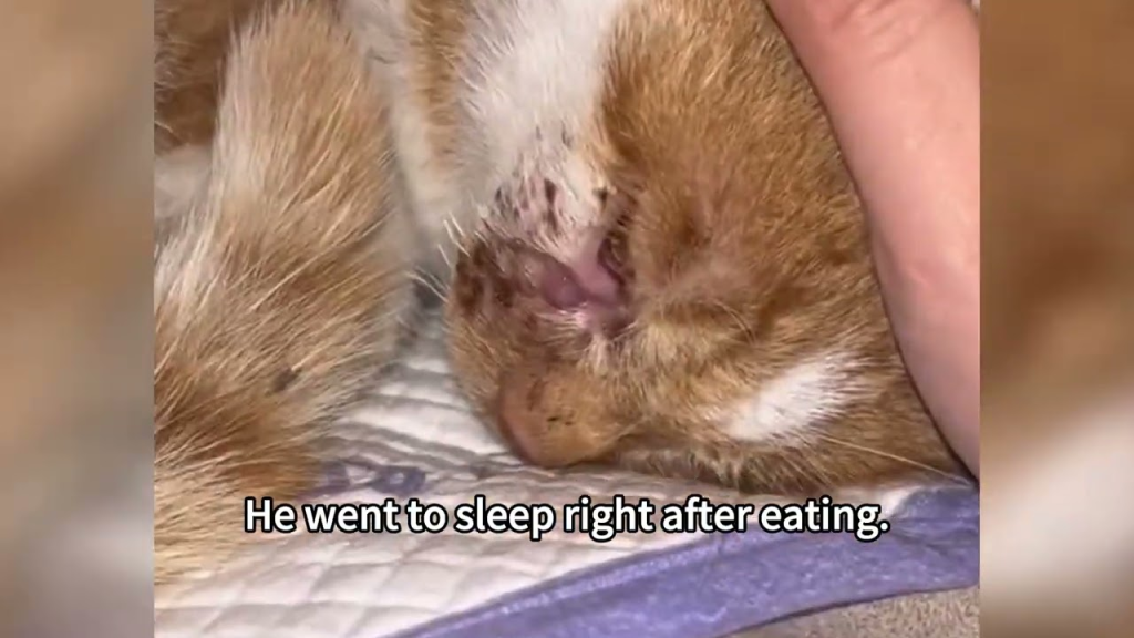 I wrapped him in a warm blanket and carried him home. He was shivering, not just from the cold, but from the weight of everything he had endured. I cleaned his wounds, fed him softly, and let him rest on a soft bed—perhaps the first comfort he’d ever known. That night, he didn’t sleep right away. Instead, he watched me with tired eyes, as if wondering, “Is this real?”