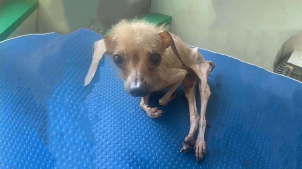 She was nothing more than a fragile shadow when we found her—skin stretched over bones, eyes sunken with sorrow, and hope all but gone. She had wandered alone for so long that she no longer expected kindness from anyone. Every step she took seemed painful, every breath a silent plea for relief. When we approached her, she didn’t growl or bark. She simply lowered her head, as if she had already accepted a life without love.