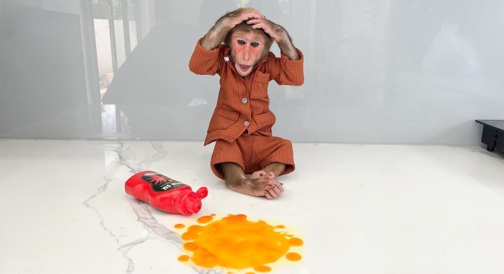 Cubis, the ever-curious little monkey, had a talent for getting himself into funny situations—but this time, his mischief came with a fiery twist. It all began on a lazy afternoon in the kitchen, where Mom was preparing lunch. On the table stood a tall, bright red bottle of chili sauce, glowing like danger to anyone who dared touch it. Of course, that meant one thing—Cubis had to investigate.