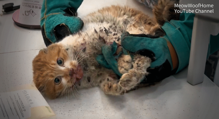 When rescuers first found the stray cat, she was nothing short of terrifying. Hissing, growling, and ready to swipe at anyone who dared come close, she had clearly endured years of pain and betrayal. Her thin frame, patchy fur, and suspicious eyes told a story of a hard life on the streets. Concerned for her health, the rescuers brought her to a veterinary clinic, hoping she could finally receive the care she needed. But after several failed attempts to examine her, the vet shook his head and refused treatment, calling her too “fierce” and “uncontrollable.”