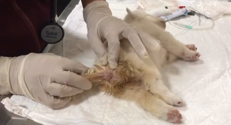 His rescuers discovered him just in time. When they picked him up, he trembled in their hands, yet his eyes held a spark—a silent plea not to be abandoned. They rushed him to the veterinarian, where the diagnosis was confirmed. Surgery was his only chance, but even then, survival was uncertain. He was so small, so delicate. Yet, he continued to fight, refusing to give up.